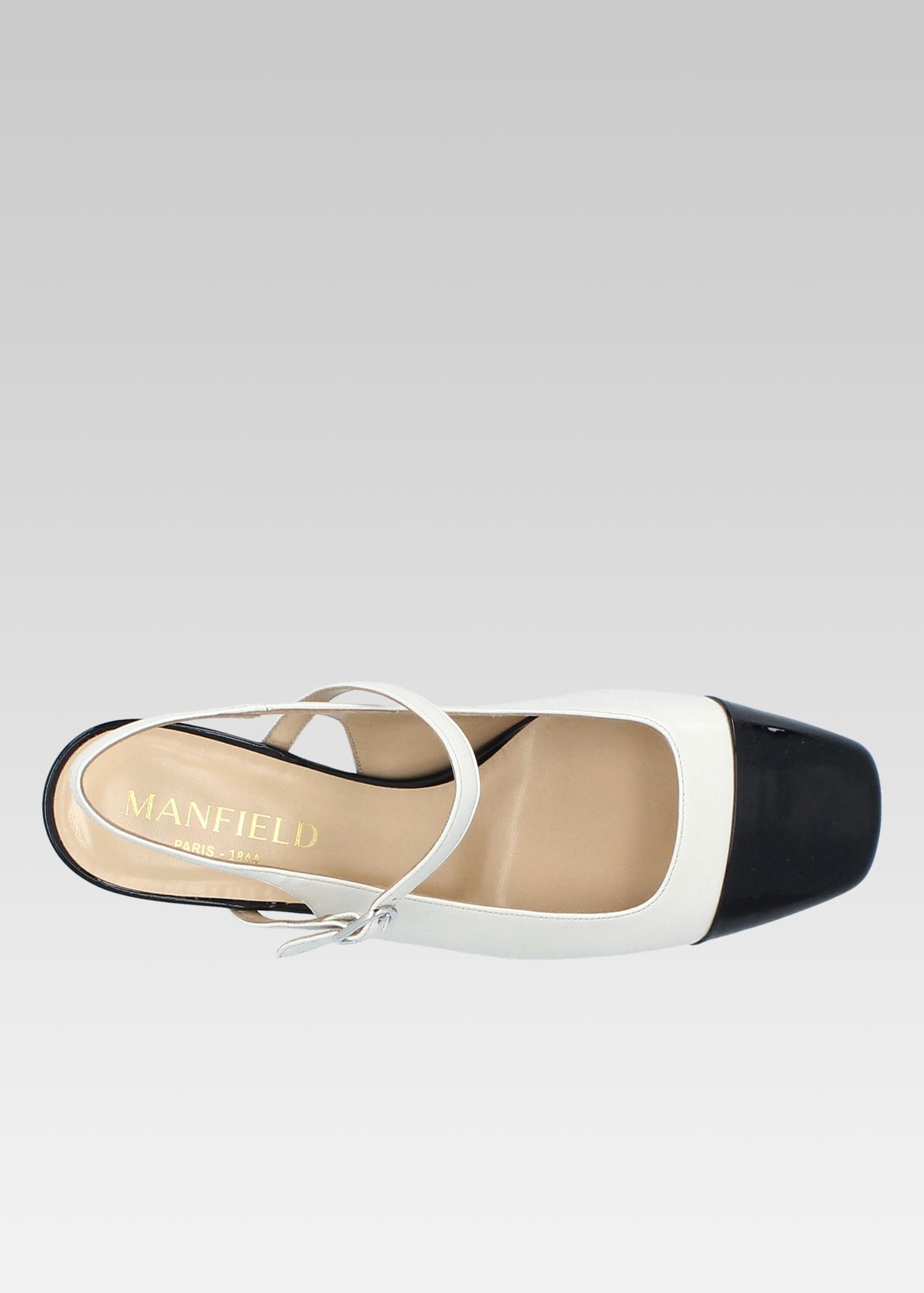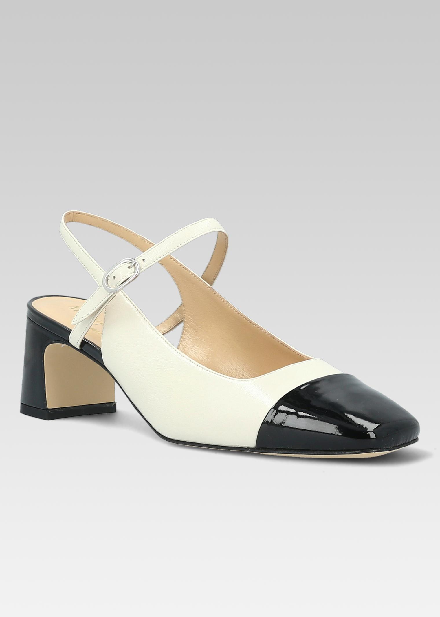 SLING BACK NAPLES CUIR BEIGE ET POINTE VERNIS NOIR
