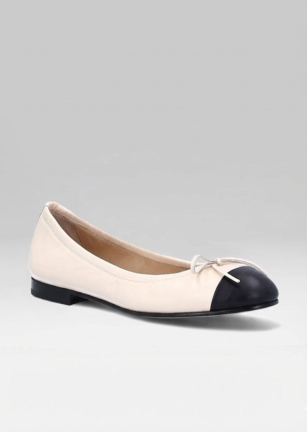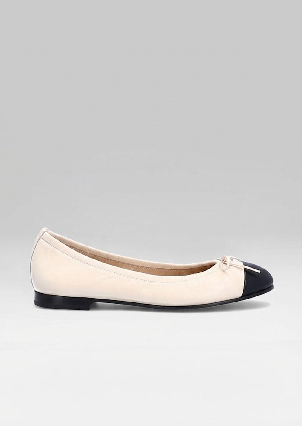 BALLERINE KOWEIT CUIR BEIGE ET NOIR