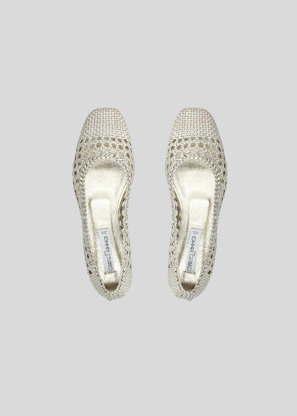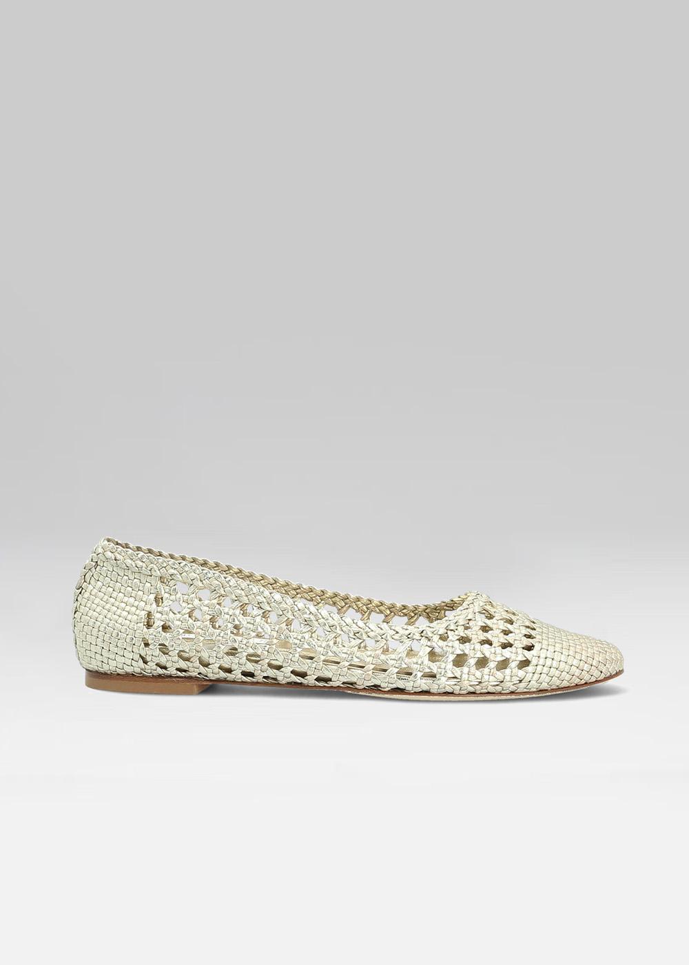 BALLERINE VENETIE CUIR TRESSE PLATINE