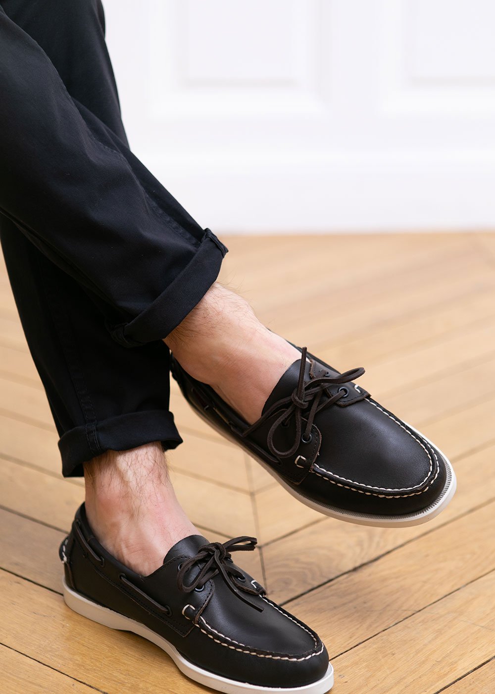 DOCKSIDES CUIR MARRON SEMELLE BLANCHE