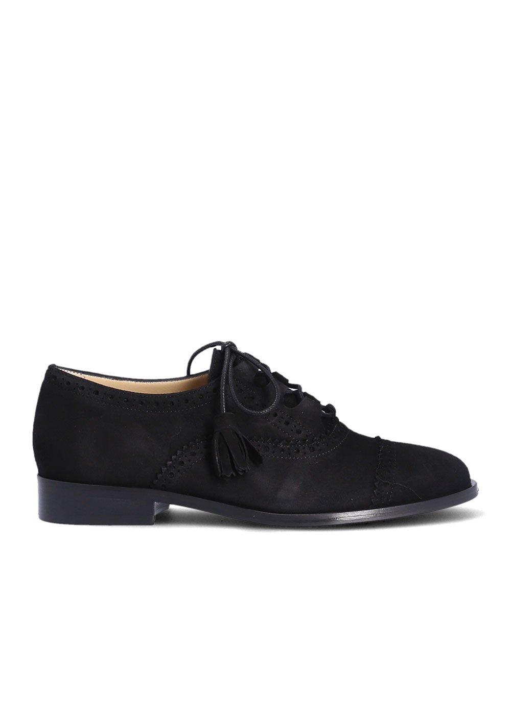 Le richelieu Ghillie revisite une silhouette classique avec une touche d'originalité bien sentie. Son cuir velours d'un noir profond lui donne une texture douce et un caractère affirmé, qui se démarque par sa construction ouverte et ses détails finement travaillés. Conçu pour traverser les journées avec aisance, il est monté sur une semelle en cuir complétée d'un patin, assurant une démarche stable et une bonne adhérence.