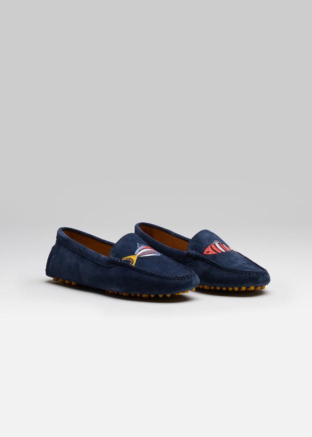 • Les mocassins buck en daim : en velours de cuir aux teintes printanières (lichen, ciel, violet, orange, poppy pink, blue zaphyr, jaune), une matière douce et enveloppante qui donne instantanément du caractère à la tenue.