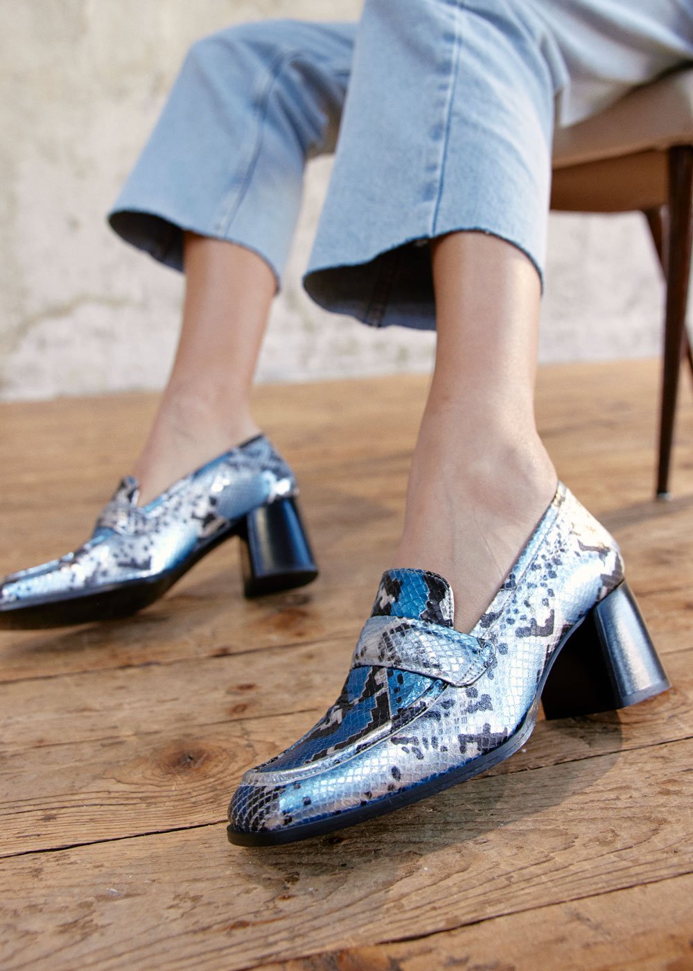 MOCASSIN SUMMER CUIR IMPRIME PYTHON BLEU