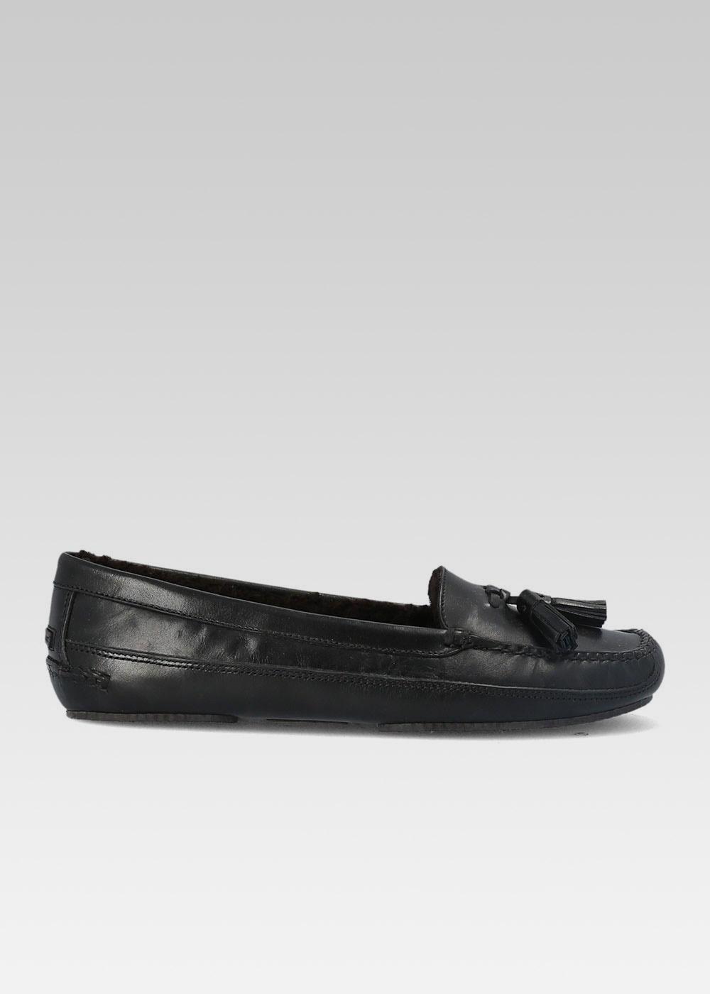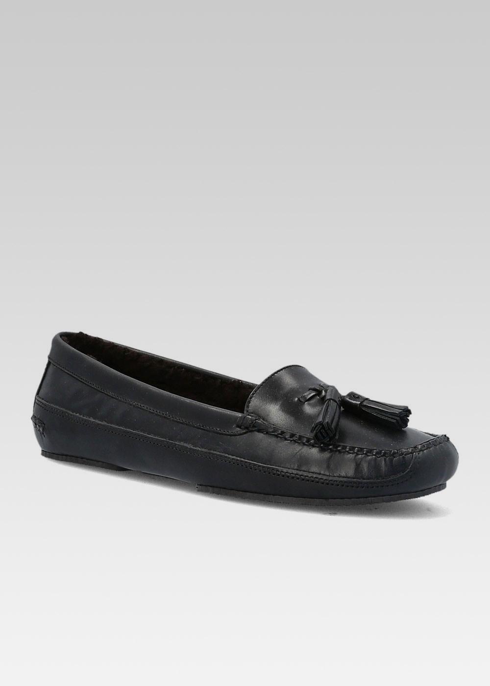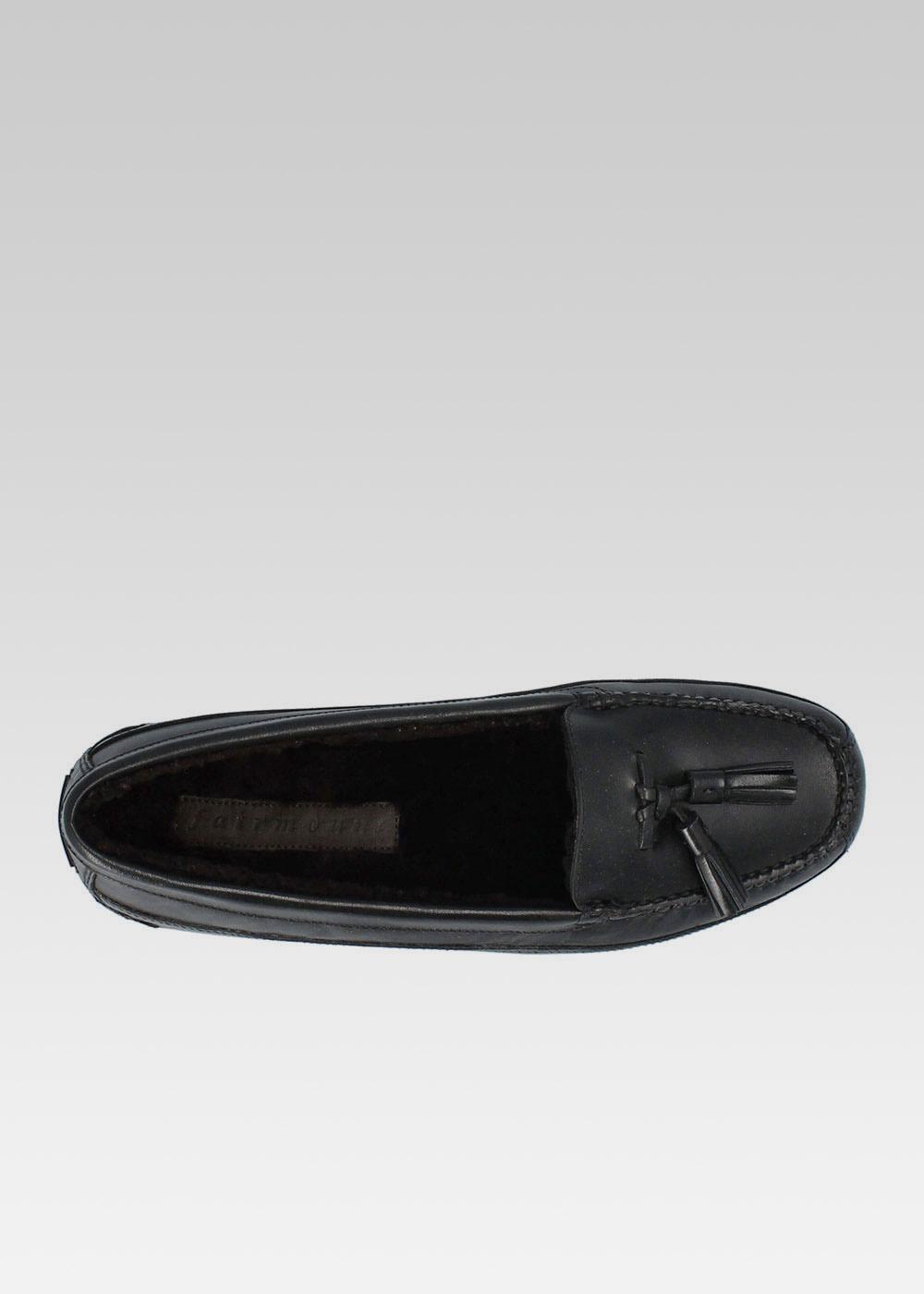 PANTOUFLE FUR TASSEL SLIPPERS CUIR NOIR