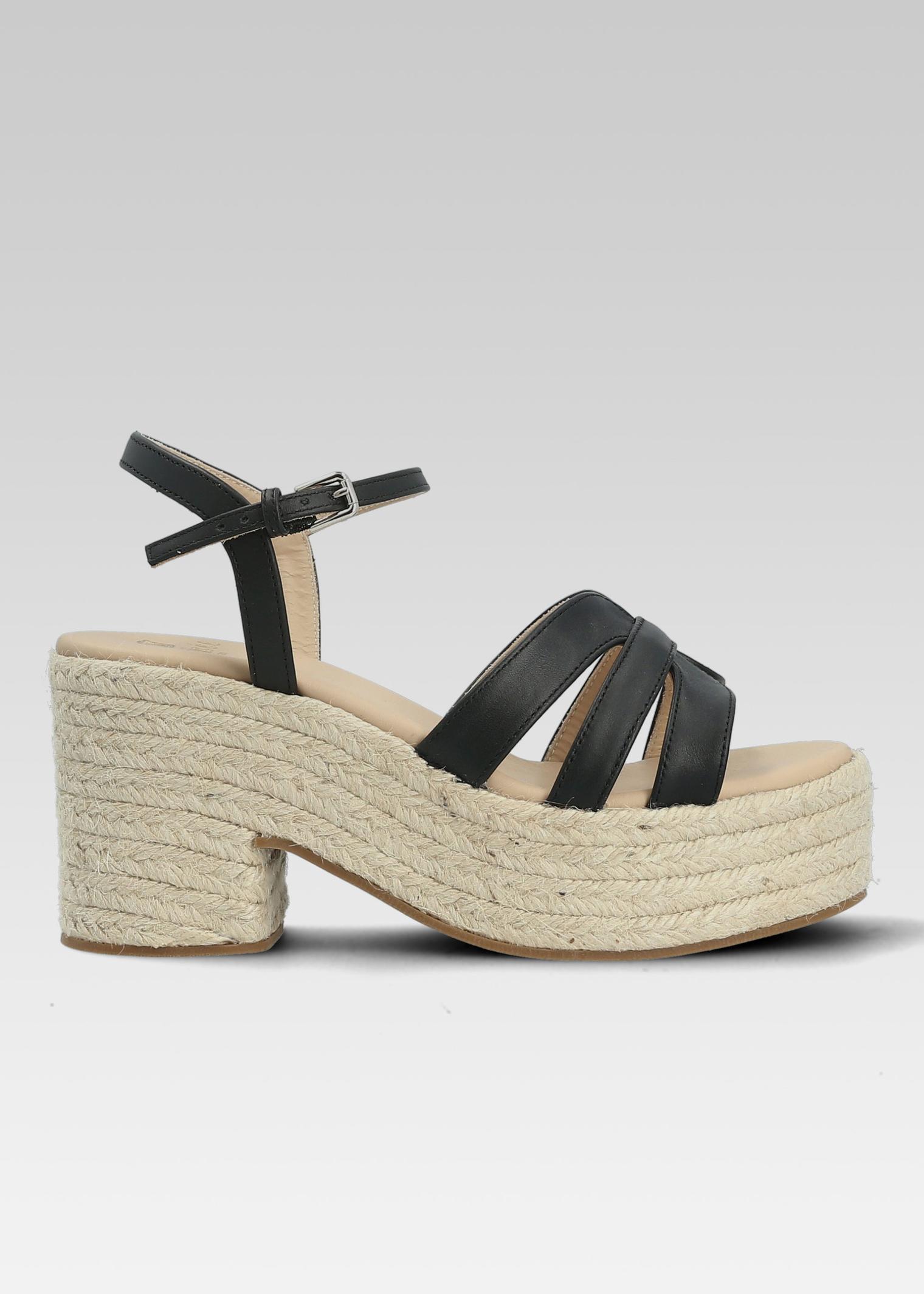 SANDALE CORDE ELEONORE CUIR NOIR