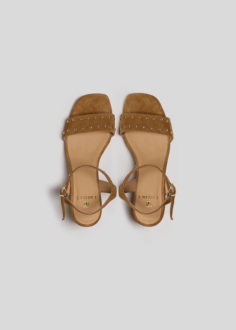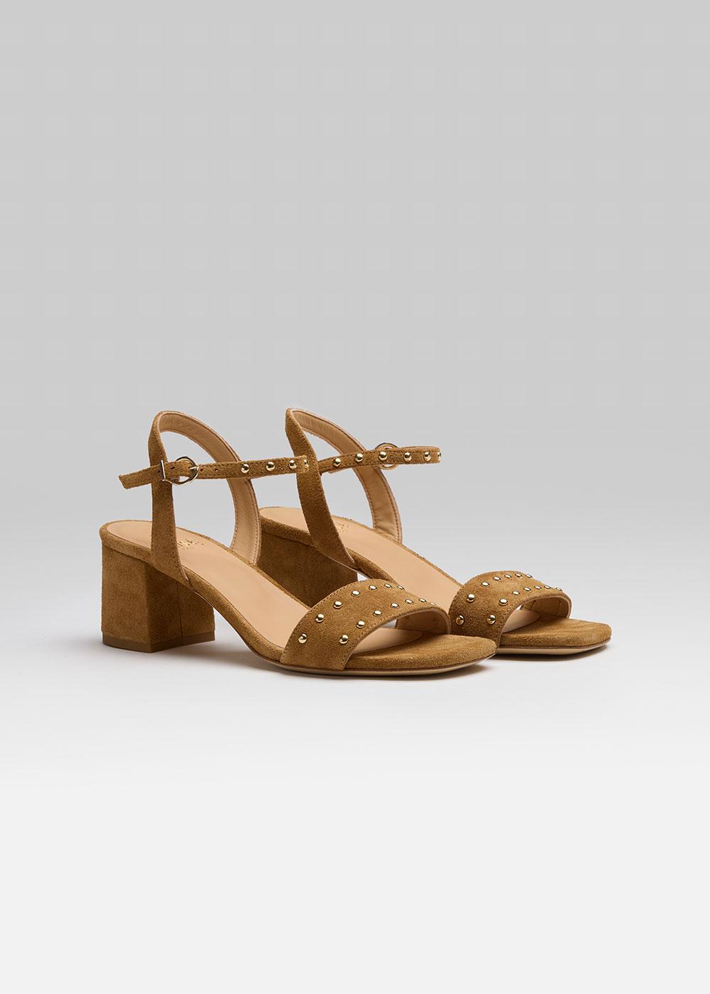 SANDALE JACYNTHE VELOURS CAMEL ET CLOUS OR